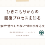 「ひきこもりからの回復プロセスを知る〜家族が待つしかないときにできる考え方〜」というテーマのもと、自身の体験と親としての視点の両面から、リカバリーへの道のりについてお話しさせていただきました。